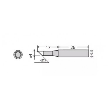 Grot lutownicy z powłoką cynową (17 mm, ⌀ 4 mm, jednostronnie ścięty pod kątem 45°) do precyzyjnego lutowania komponentów. Kompatybilna z Goot PX-501(AS)/601(AS), RX-701(AS)/711(AS), CXR-31/41.