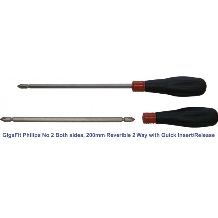GigaFit Phillips(+) 2 Both sides, 200mm, Reversible 2 Way with Quick Insert/Release.
