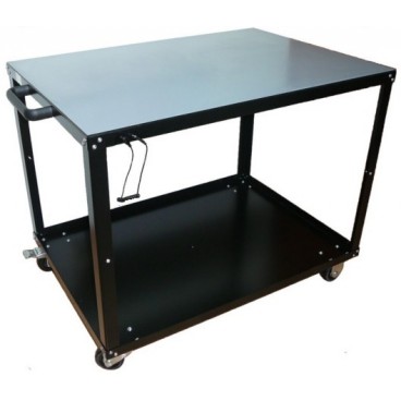 Antystatyczny dwupoziomowy wózek transportowy. Duże, antystatyczne kółka nie rysujące powierzchni. Dwa obrotowe, jeden z hamulcem. Wygodny uchwyt do ciągnięcia lub pchania. Wymiary: 600x850x700. Ładowność: 400lb (~185kg)